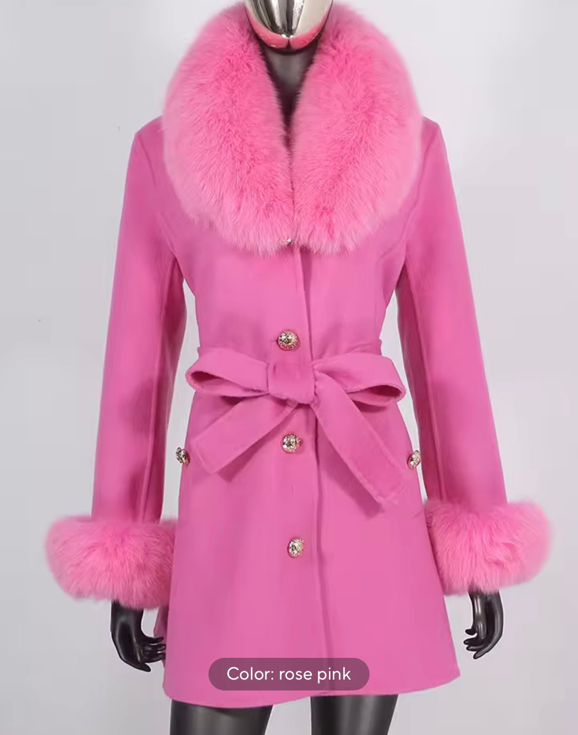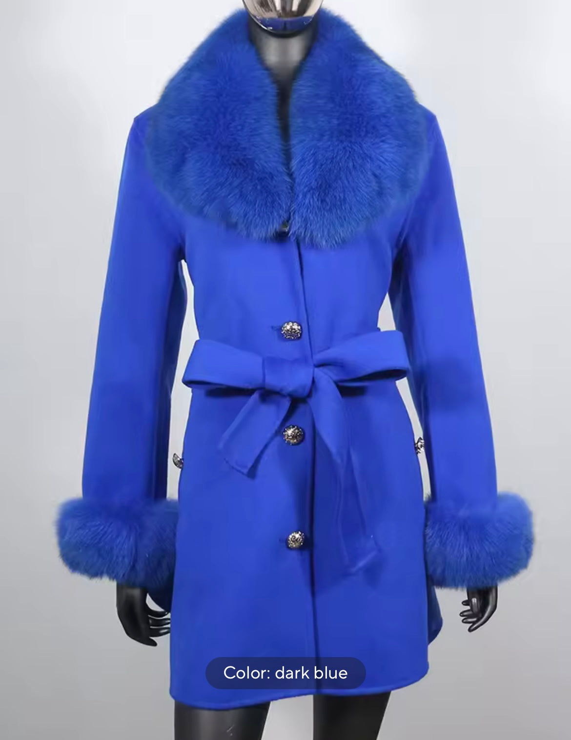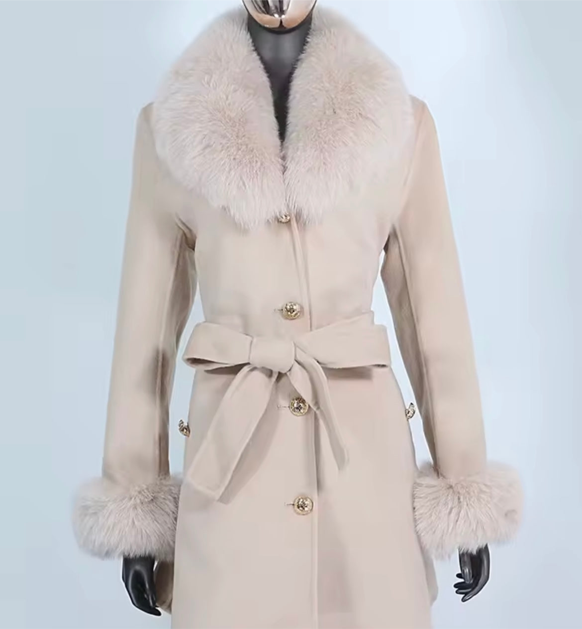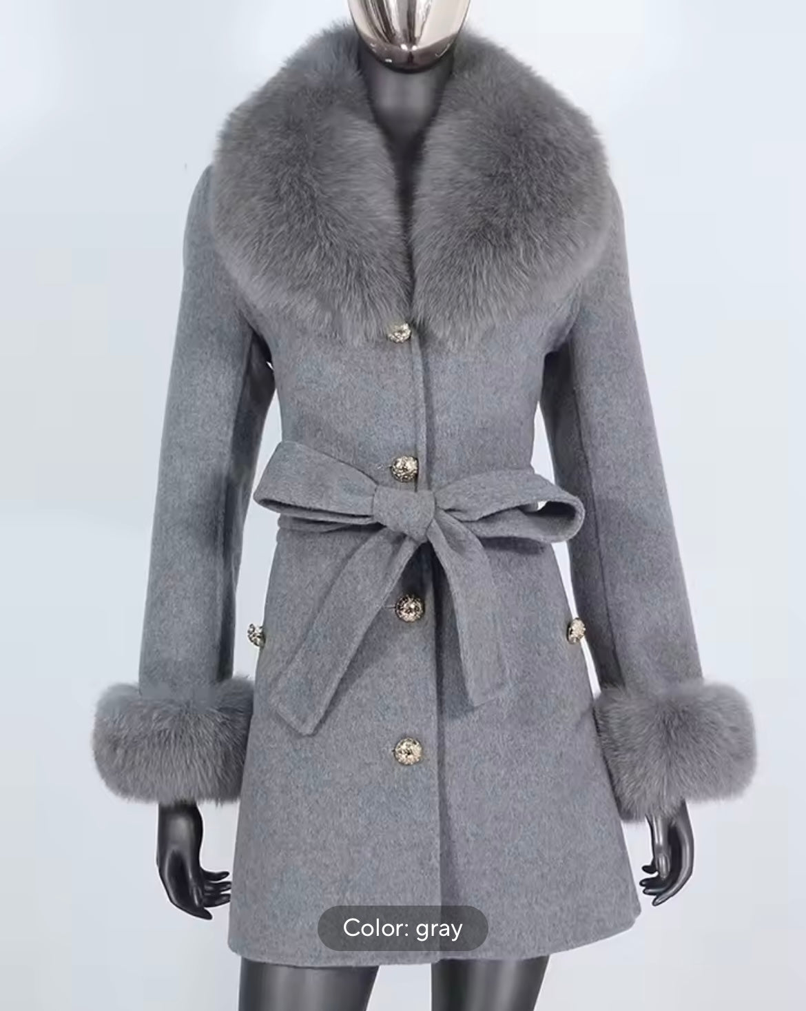 This coat is made of blended cashmere & wool, with detachable fur cuffs and a matching full fur collar, perfect for all year round wear.