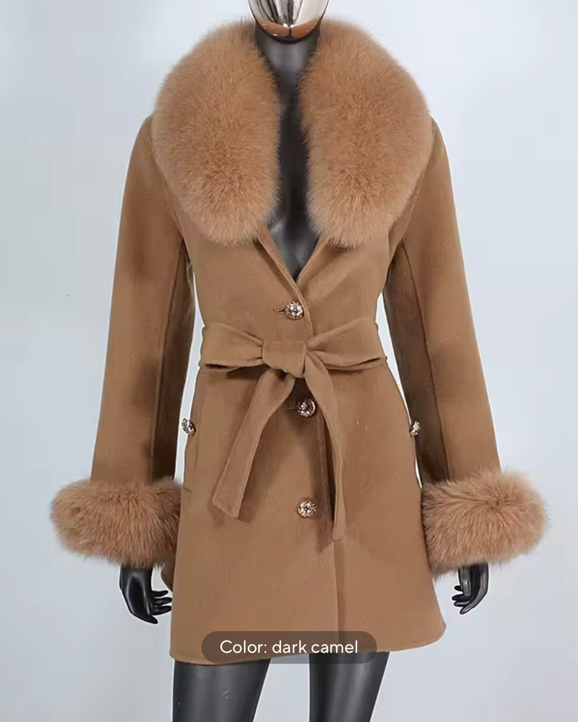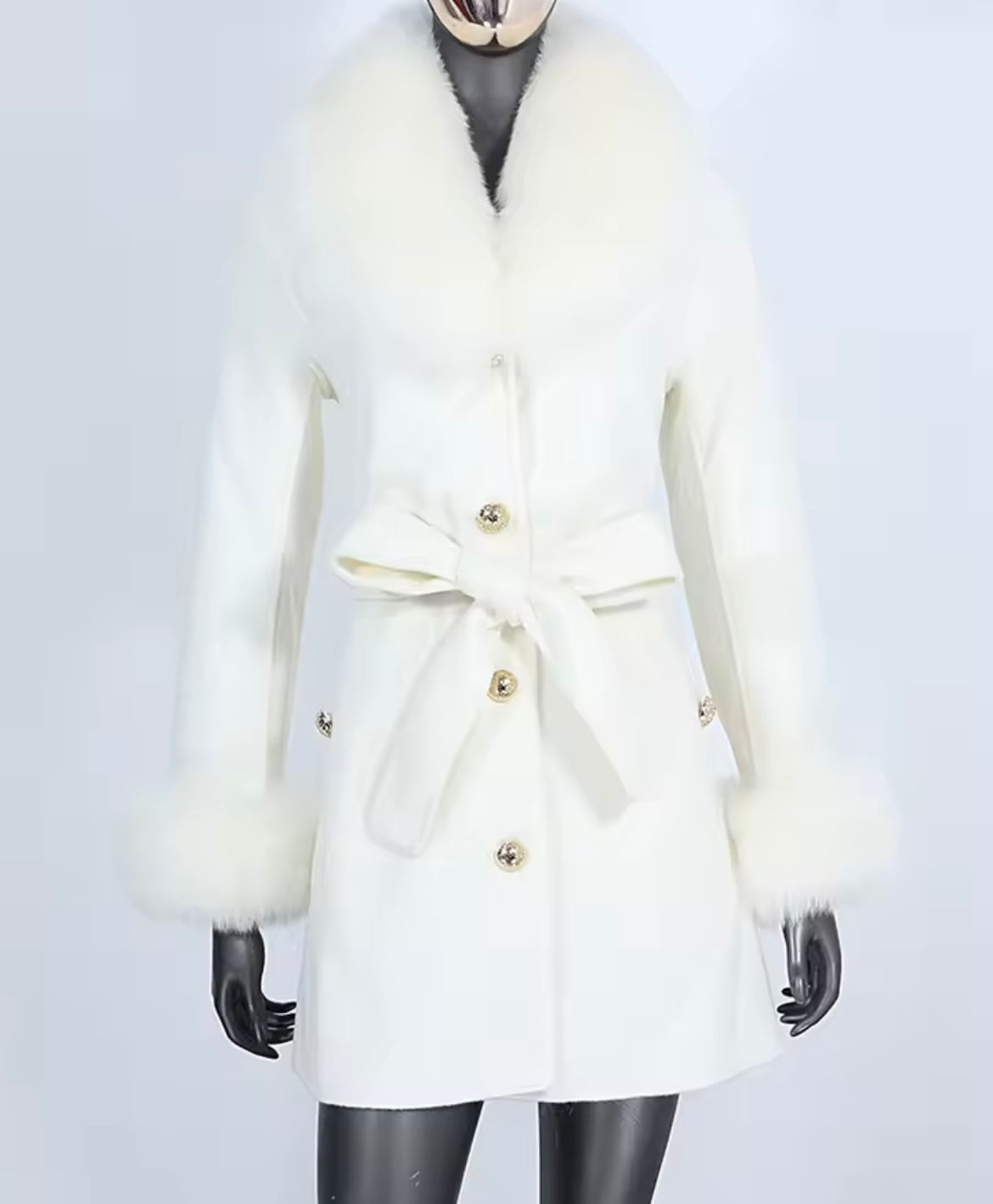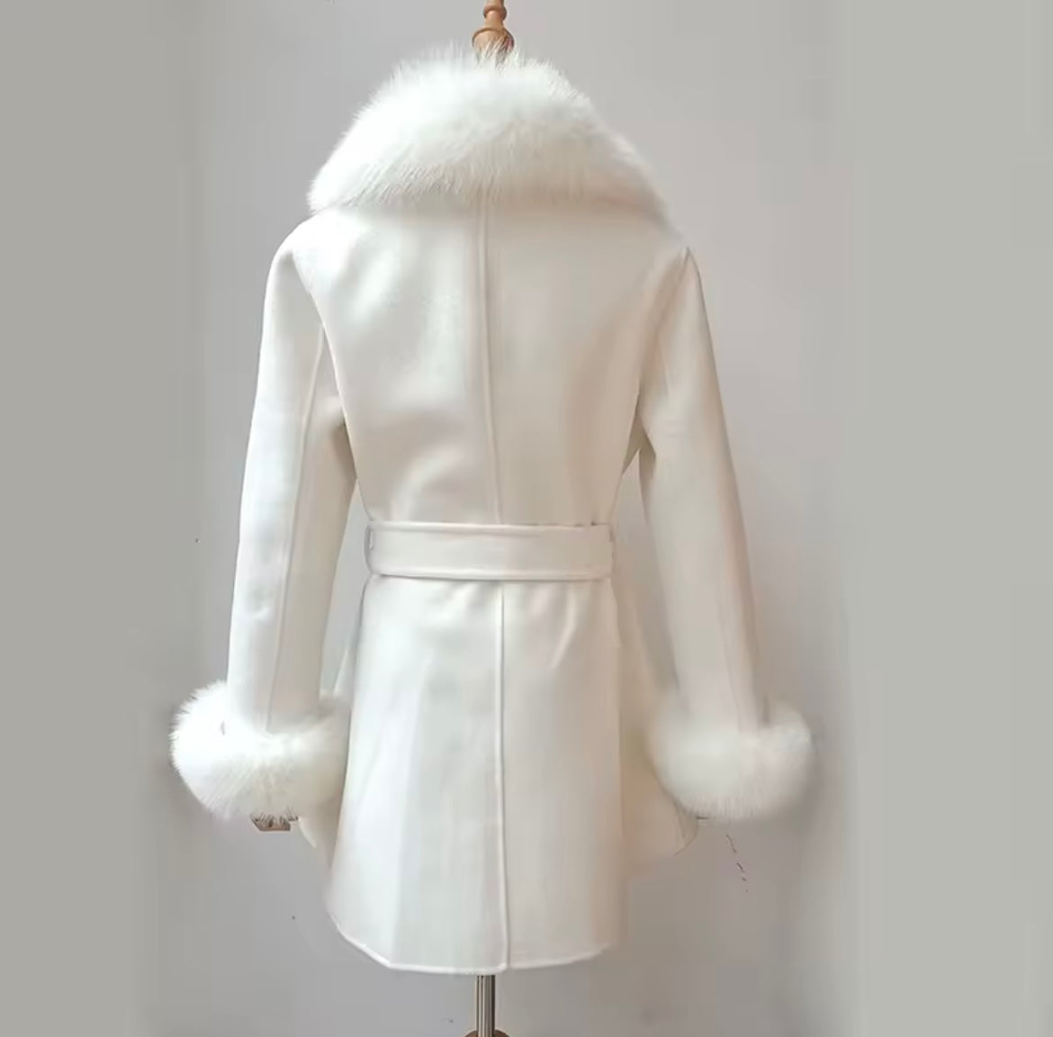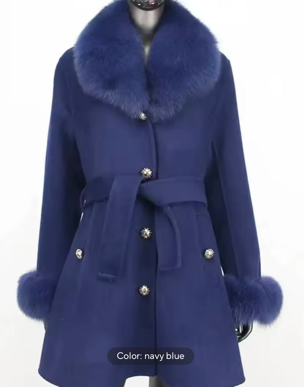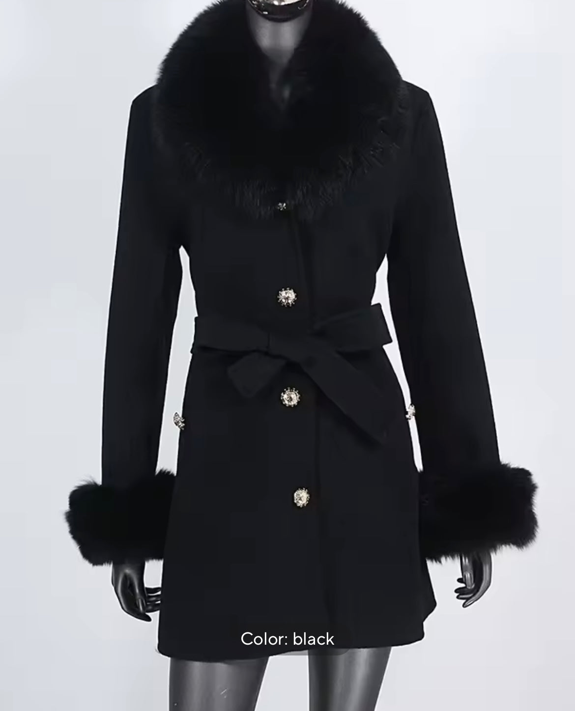 This coat is made of blended cashmere & wool, with detachable fur cuffs and a matching full fur collar, perfect for all year round wear.