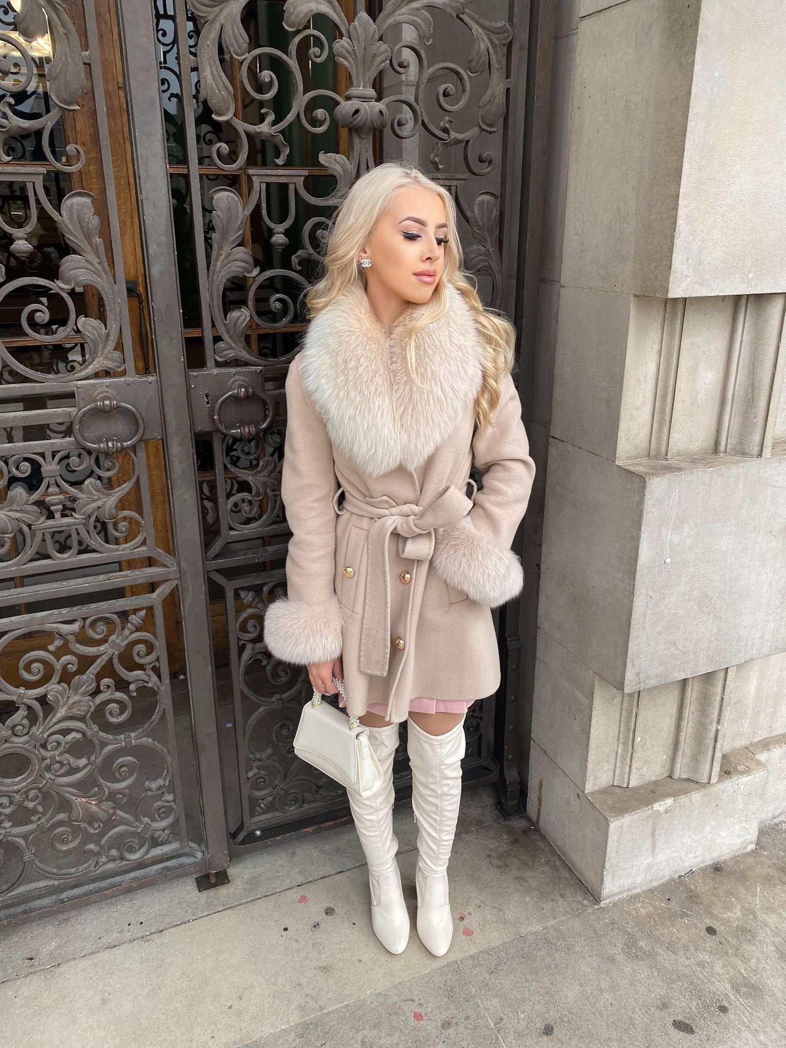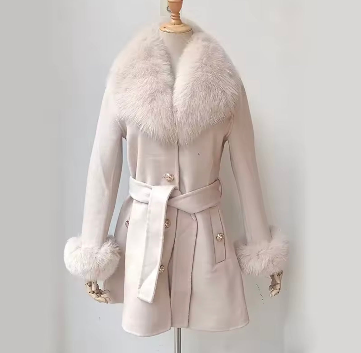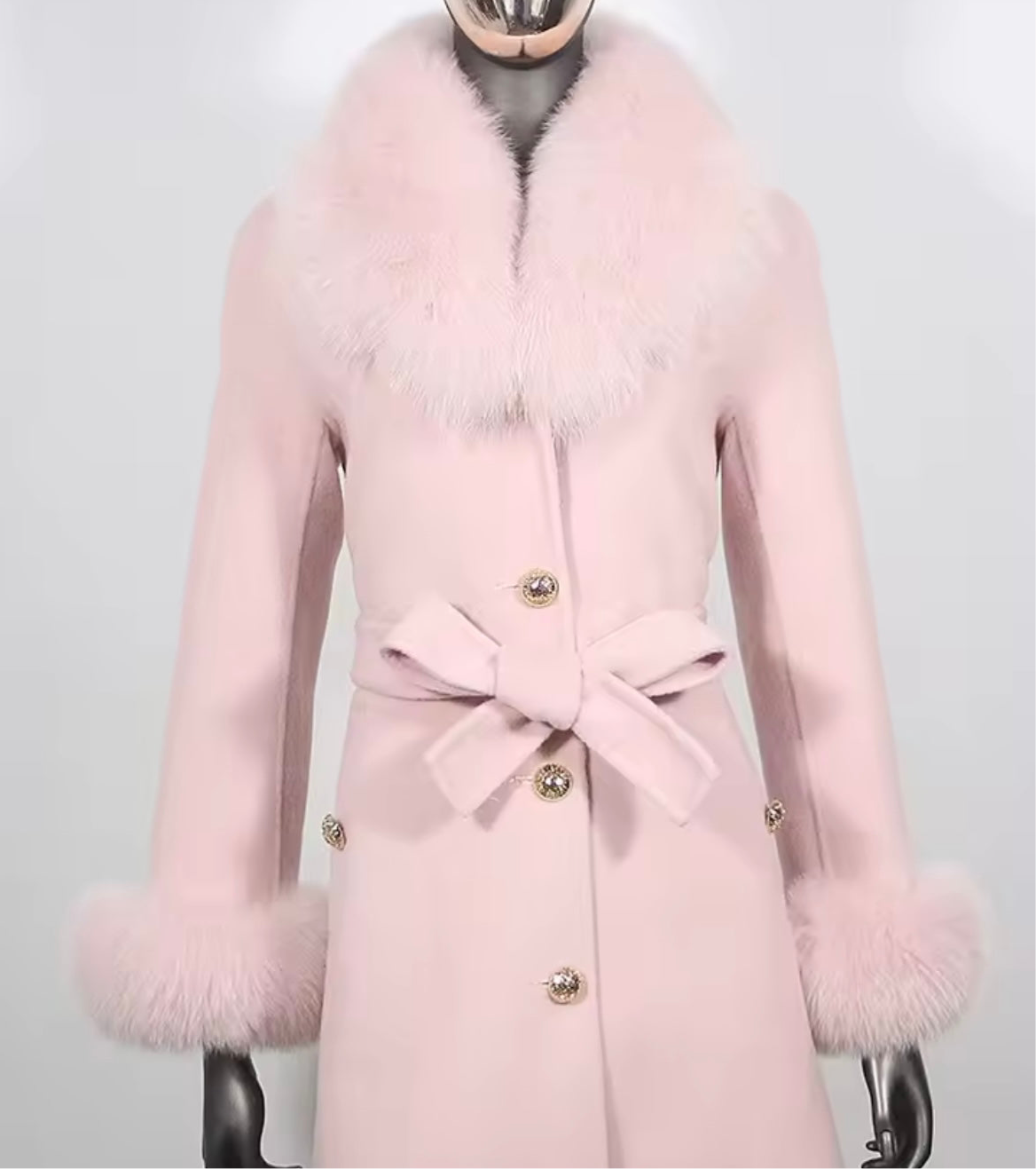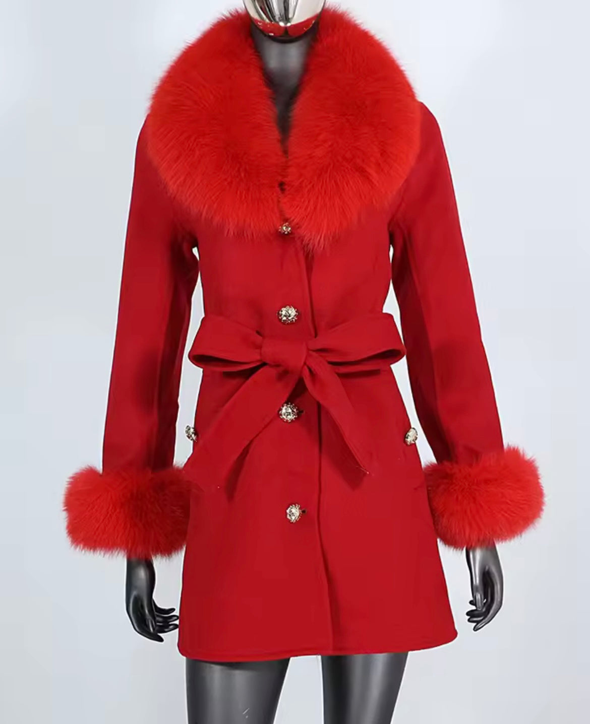 This coat is made of blended cashmere & wool, with detachable fur cuffs and a matching full fur collar, perfect for all year round wear.